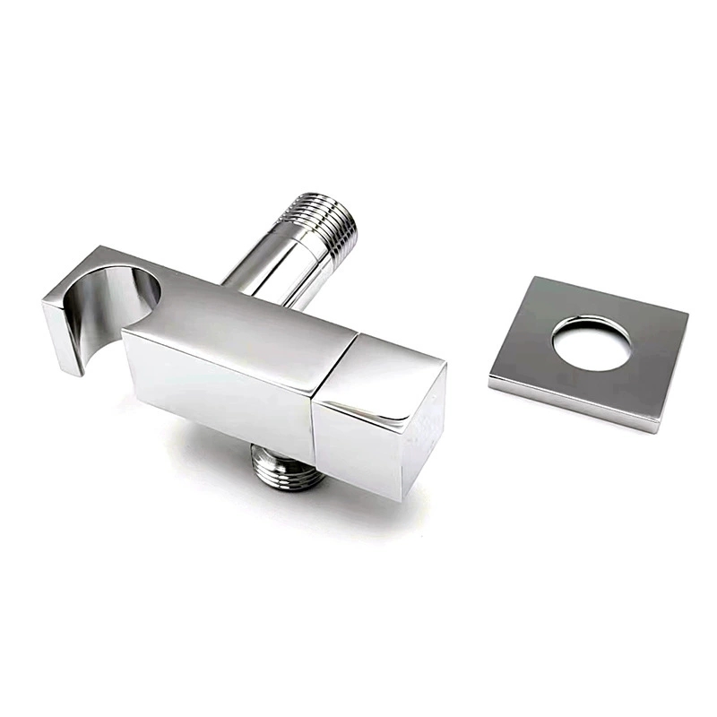 Van góc vuông bằng đồng thau nguyên khối dày có giá đỡ vòi hoa sen, Van chặn thẳng 1/2 "cho bình xịt chậu vệ sinh & vòi hoa sen cầm tay, phụ kiện ống nước trong phòng tắm