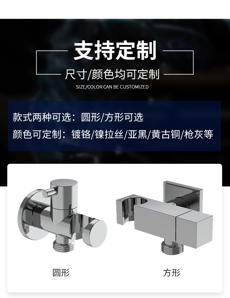 Mục đích cốt lõi của nó là cung cấp giải pháp đa chức năng, chống rò rỉ và tiết kiệm không gian để lắp đặt vòi hoa sen cầm tay/bình xịt chậu vệ sinh trong phòng tắm, tích hợp kết nối ổ cắm nước, bộ chuyển đổi khuỷu tay và giá đỡ trong một thiết kế nhỏ gọn. Sản phẩm sử dụng cấu trúc đồng thau nguyên khối cao cấp: đường dẫn nước, khớp nối ren và các bộ phận chịu lực tiếp xúc trực tiếp với nước và tường đều được chế tạo từ đồng thau có độ tinh khiết cao để đảm bảo khả năng chống ăn mòn lâu dài, chống rỉ sét và không rò rỉ nước. Bề mặt trải qua quá trình đánh bóng và mạ crom nghiêm ngặt, mang lại vẻ sáng bóng như gương, mịn màng, có khả năng chống bám nước, dấu vân tay và dễ dàng lau chùi chỉ bằng một lần lau.